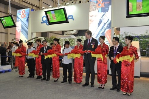 绿色,绿色,还是绿色!不用怀疑,好似大自然一般清新、舒适的靓丽风景确实是高宝的超大展台,1020平方米的面积创造了德国高宝在中国各类展会参展的历史纪录。4月9日,第二届中国(广东)国际印刷技术展览会(Print China)在东莞正式开幕,而德国高宝也将在未来的5天里,展示全新的设备与形象,由此德国高宝正式亮相Print China2011。