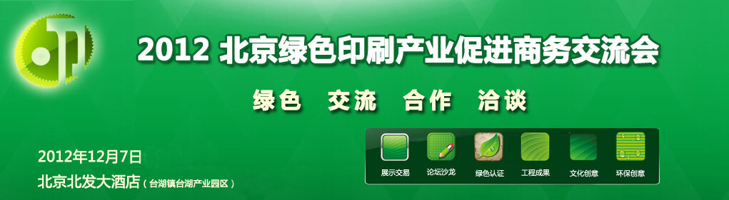 1. 绿色印刷成果展示: · 绿色印刷总论; · 绿色印前区; · 印刷数字化区/绿色印刷成果区; · 数码印刷区; · 绿色印后区; · 绿色耗材区; · 节能减排区; 2. 主题沙龙 2012年12月7日上午10:00-下午16:40